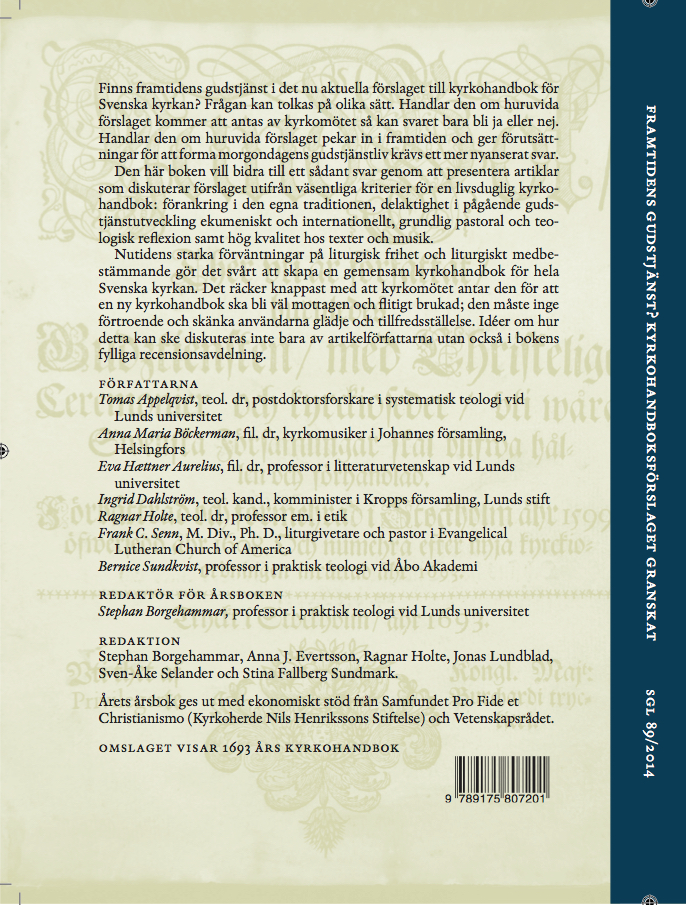 Nutidens starka förväntningar på liturgisk frihet och liturgiskt medbestämmande gör det svårt att skapa en gemensam kyrkohandbok för hela Svenska kyrkan. Det räcker knappast med att kyrkomötet antar den för att en ny kyrkohandbok ska bli väl mottagen och flitigt brukad; den måste inge förtroende och skänka användarna glädje och tillfredsställelse. Idéer om hur detta kan ske diskuteras inte bara av artikelförfattarna utan också i bokens fylliga recensionsavdelning.
