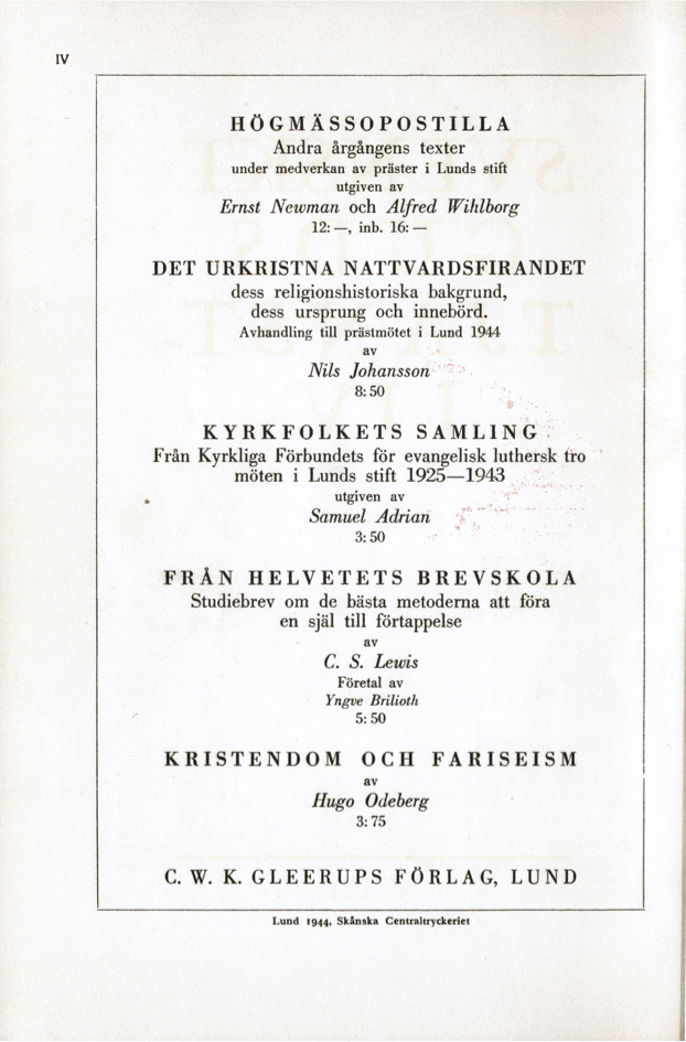Vol 19 (1944): Svenskt gudstjänstliv Årgång 19 1944 häfte 3
