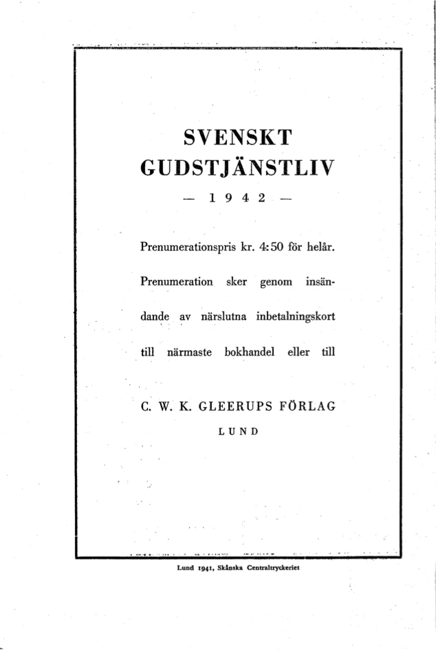 Vol 16 (1941): Tidskrift för kyrkomusik och svenskt gudstjänstliv Årgång 16 1941 häfte 4