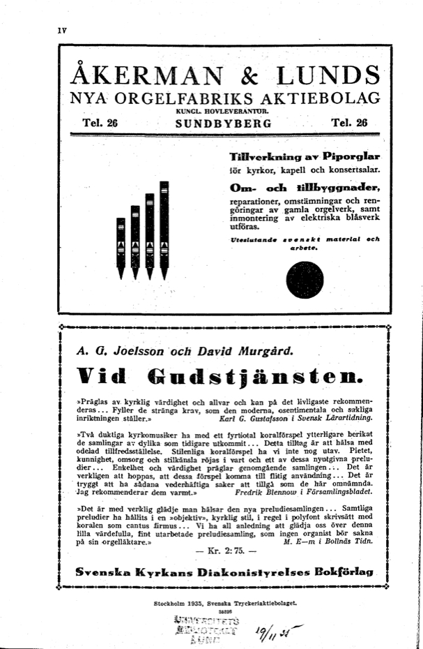 Vol 10 (1935): Tidskrift för kyrkomusik och svenskt gudstjänstliv Årgång 10 1935 häfte 11
