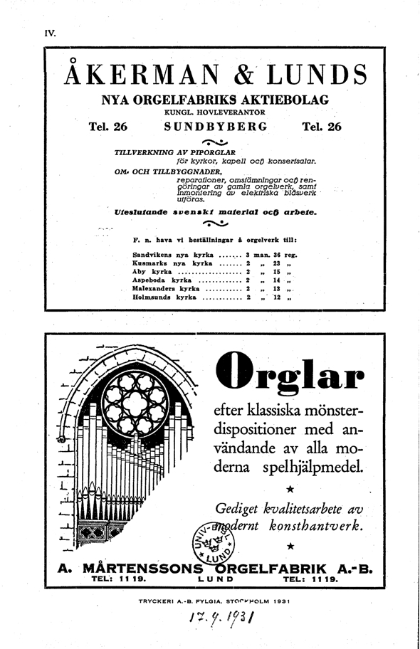Tidskrift för kyrkomusik och svenskt gudstjänstliv Årgång 6 1931 Häfte 9