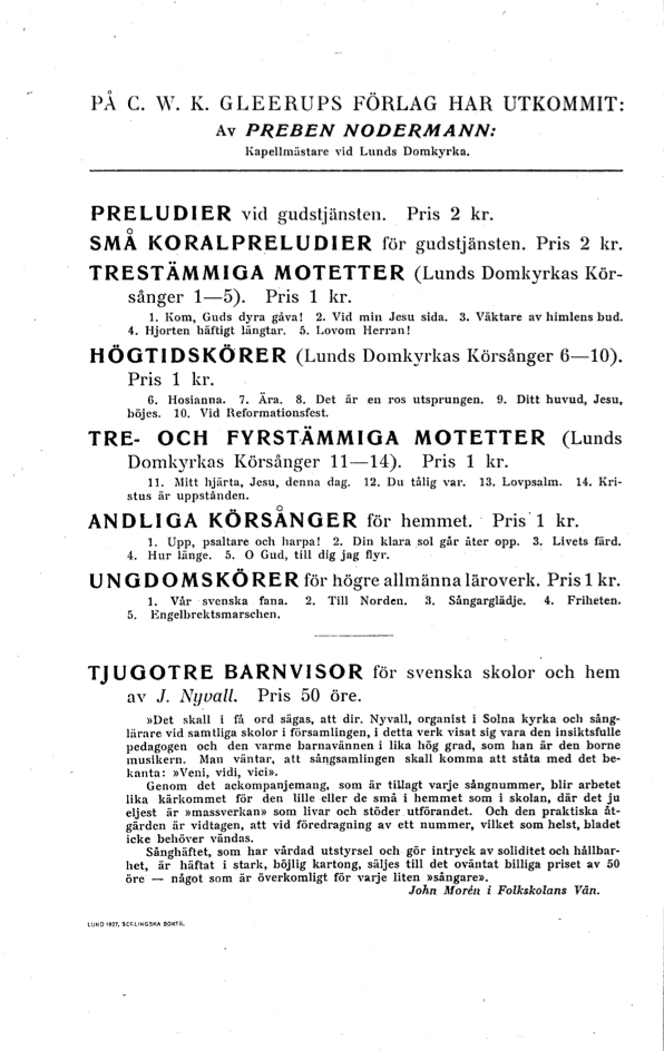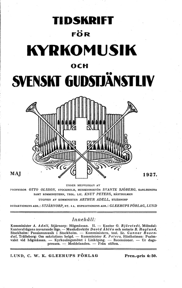 Vol 2 (1927): Tidskrift för kyrkomusik och svenskt gudstjänstliv Årgång 2 1927 Häfte 5