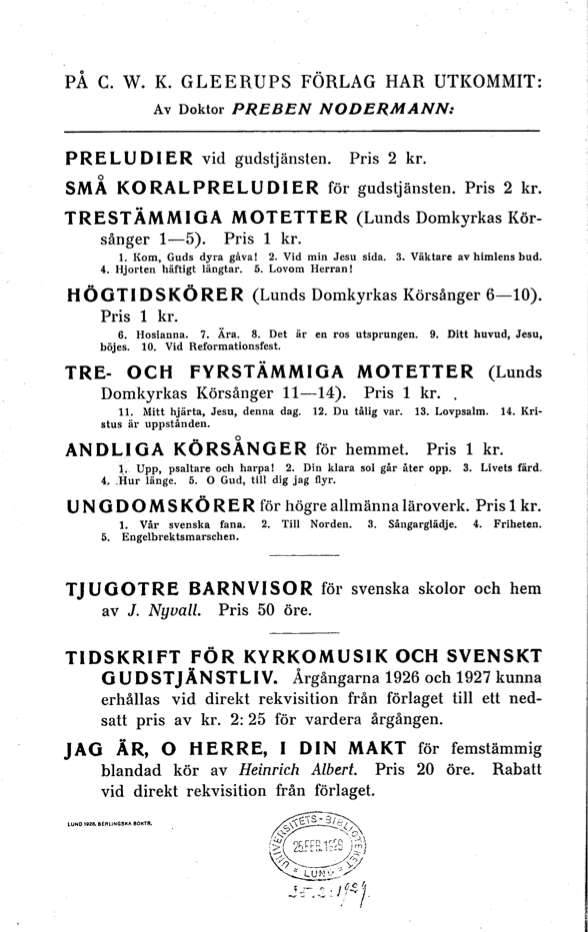Vol 3 (1928): Tidskrift för kyrkomusik och svenskt gudstjänstliv Årgång 3 1928 Häfte 12