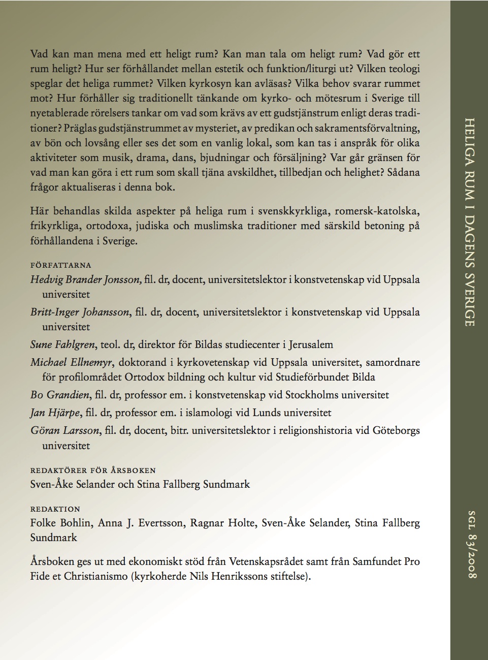 Vol 83 (2008): Heliga rum i dagens Sverige